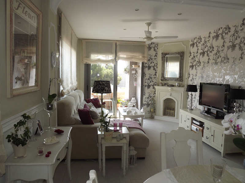 Comentaba ayer con una amiga,Elena,seguidora de mi blog,lo que cambia una estancia cuando se empapela,ella acaba de hacerlo en su casa y le ha quedado precioso...ya sabéis mi adicción por el pápel,lo colocaría en todos sitios,creo que le da vida a las paredes y le aporta calidez,movimiento y belleza.Mi salón es un ejemplo de ello y hoy miércoles os lo muestro.Tan solo empapelando una pared el cambio es espectacular y se transforma de tal forma que parece diferente...Lo elegimos en tonos plateados,algo atrevido,pero ahora cuando la luz del atardecer se refleja en él,pienso que la elección fue la correcta y que a veces debemos dejarnos llevar por impulsos a la hora de decorar nuestro hogar.Os dejo las imágenes con la transformación y os animo a empapelar,el salón,vuestra habitación,la de vuestros hijos e incluso el office de vuestra cocina,el cambio vale la pena...