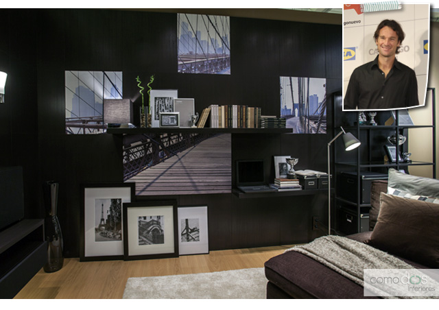 Carlos Moya, sin duda, demostró que lucha por los retos, y es que contando solo con 700 ? de presupuesto, quería ese rincón masculino, donde desconectar, disfrutar de la siesta y tener un espacio para uno mismo. Conseguido con tonos oscuros, texturas variadas y laminas enmarcadas, el espacio adquiere un aspecto acogedor y privado.