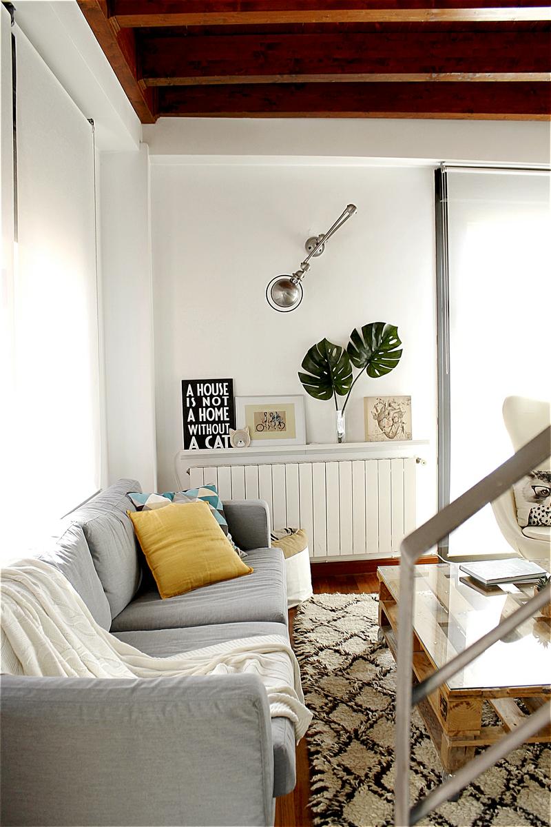 La casa tiene muchas piezas a las que le tienen especial cariño, como por ejemplo, la mesa de centro del salón. La hicieron ellos mismos con dos palés cuando se fueron a vivir juntos por primera vez. Nos cuentan que desde entonces les ha acompañado siempre y le han sacado muchísimo partido por su comodidad y funcionalidad.