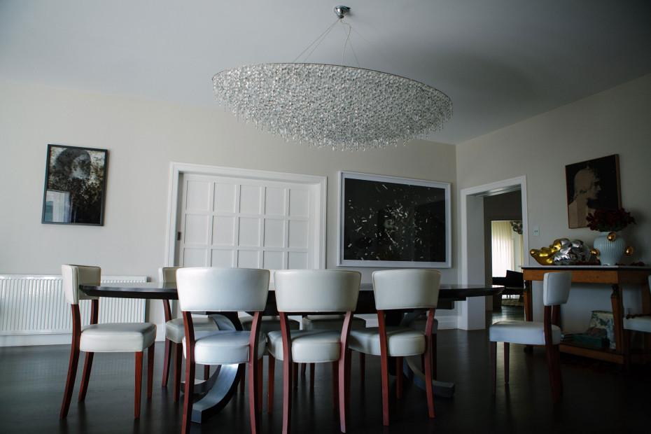 Su casa en el binomio de moda, blanco y negro, y con rincones decorados con arte, sobre todo obra fotográfica. En el dormitorio llama la atención la biblioteca que recorre la pared circular de la ventana. Formas redondeadas y acogedoras en los muebles escasos, pero muy bien elegidos.