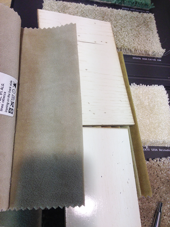 Teniendo clara la distribución, me puse a buscar las piezas necesarias teniendo en cuenta el gusto de mi clienta. Sabíamos que algunas cosas tenían que ser por encargo, diseñadas y hechas a medida, como el chaise-longue, las sillas, las cortinas y la alfombra, incluso algún que otro cuadro, así que fue lo primero que se decidió.El chaise-longue lo encargamos en color blanco de tela lavable, con un diseño recto, sencillo y sin costuras en los asientos y los respaldos.