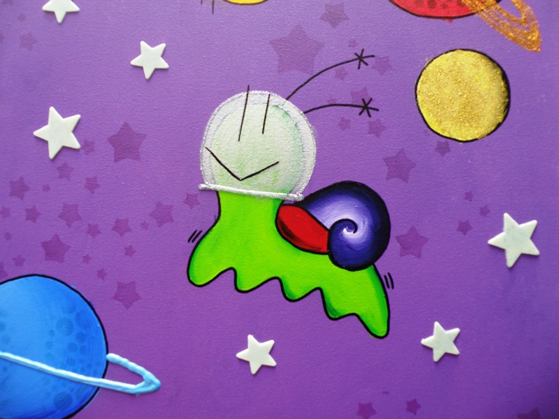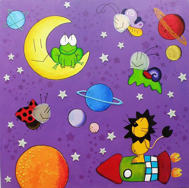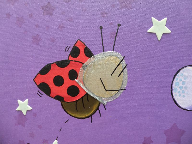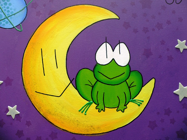 Con nuestra rana Martina sentada en una gran luna, y lo que mola más, las estrellas brillan en la oscuridad!!!