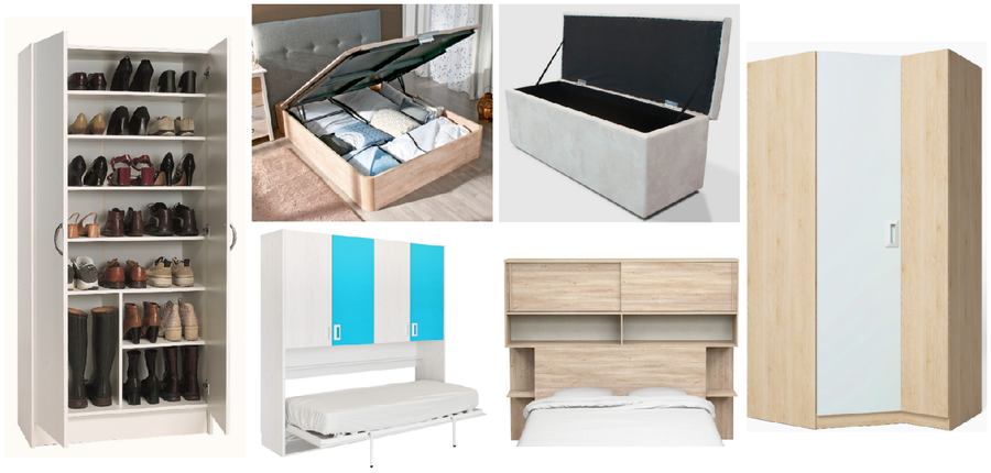 Llega el turno del dormitorio y su respectivo caos a la hora de organizar toda la ropa. A todos nos gustaría tener un vestidor de ensueño y, por tener una casa pequeña, pensamos que es imposible. ¡Siempre hay soluciones! Un gran idea es tener una cama compacta con canapé o cajones, ¿te imaginas cuántos zapatos caben ahí? Puedes hacer lo mismo con un arcón. Otra idea para el calzado es poner una armario-zapatero para aprovechar la pared de arriba a abajo.Para un dormitorio juvenil, una cama abatible es la mejor solución para despejar el centro de la habitación. No desaproveches las esquinas y elige un armario que se adapte a este rincón. Si aún así, sigues necesitando espacio, no te olvides de que el cabecero también puede tener baldas y cajones.