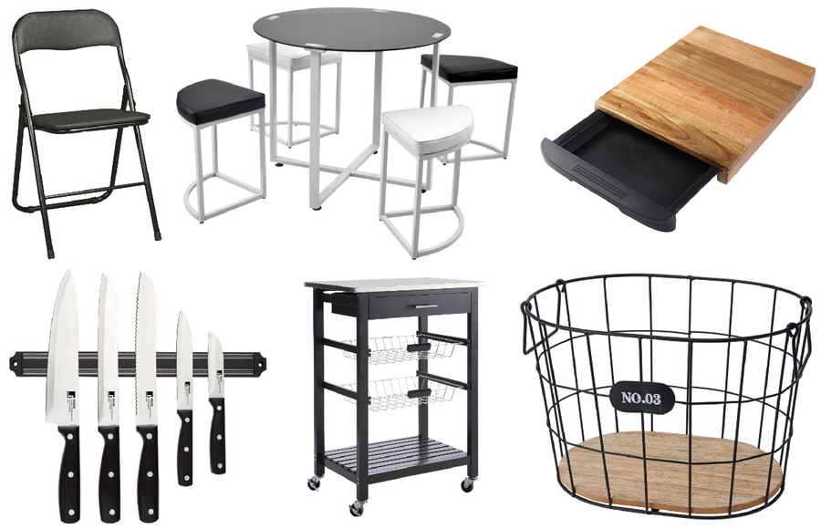 ¿Todavía quieres más ideas? Mira esta forma de tener tus cuchillos ordenados con un imán. Otra idea que tiene cabida en toda cocina son los carritos verduleros o las cestas, muy prácticos para utilizarlos con una minidespensa. Tampoco renuncies a tener un office, puedes poner mobiliario plegable o un conjunto de mesa con taburetes que se recogen de forma cómoda.