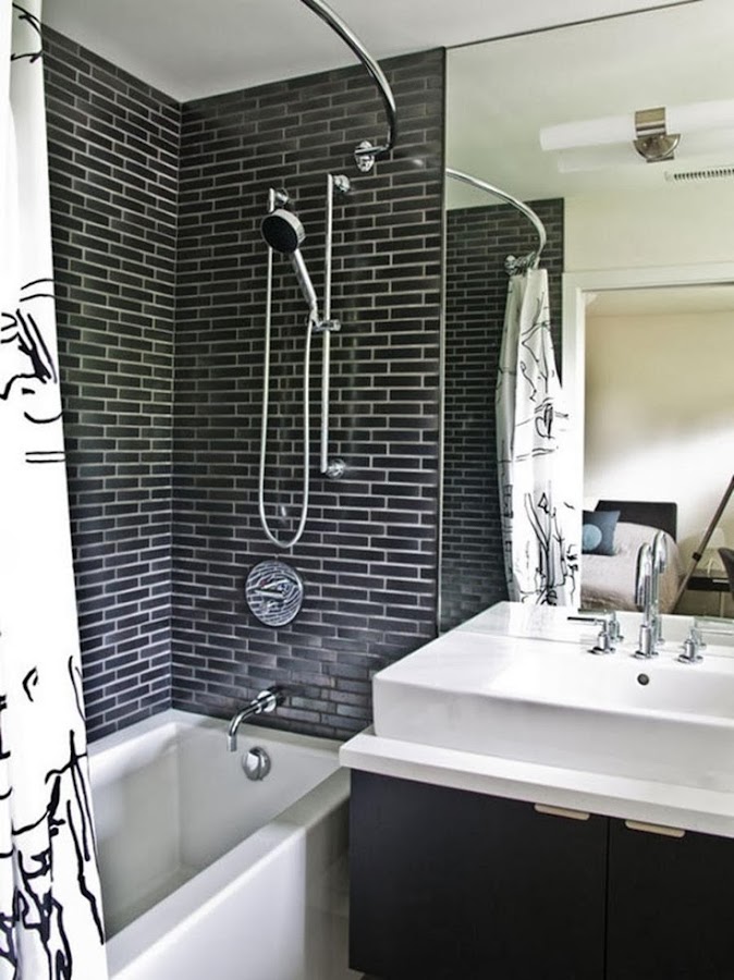 En cuanto a los baños el hecho de tener una pared de ladrillo sin cubrir, es algo peligroso, puesto que el baño es de las zonas más húmedas de nuestra casa y las filtraciones de humedad incluso de agua directa (si se trata de la pared de la ducha) es poco recomendable, pero os dejo aquí un estilo de azulejo que imita a ladrillo para todos los amantes de este elemento.