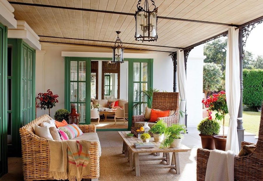 Y qué decir de esos enormes ventanales que se abren a la naturaleza próximos a un lago aunque también disfrutan de tener cerca el mediterráneo. Pues es encantadora por dentro y por fuera porque los porches no son para menos. Bueno, os dejo un ratito en ella porque me ha parecido tan bonito todo que no he podido evitar dejarla aquí.
