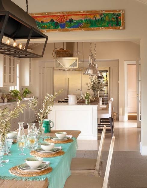 Se nota la influencia clásica y señorial de los cortijos pero no han querido olvidarse de la calidez que aporta la madera blanca del estilo nórdico y también la han querido incorporar en algunos puntos de la casa como en la cocina.