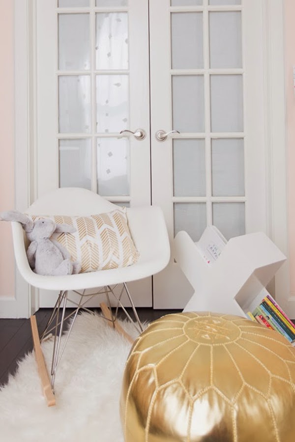 Un precioso y cómodo dormitorio infantil que reune todos y cada uno de los elementos básicos para empezar a convivir con tu bebé. La cuna, el sillón mecedora para esas largas noches (cuenta la leyenda que son pocos los que se libran de no pasar unas cuantas en vela) y la cómoda cambiador. Creedme, todo lo demás es accesorio. Ahora, esa guirnalda de peluches me parece un inventazo. ¡Feliz lunes ...