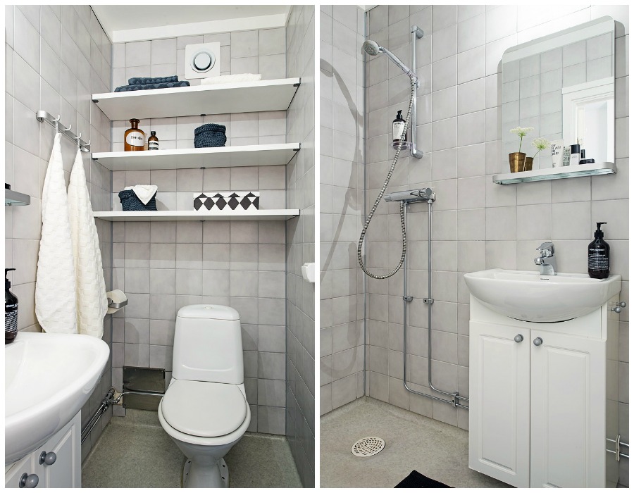 Si te fijas en el plano del final del post, el hall distribuye el apartamento en dos, a la derecha la cocina y a la izquierda el salón-dormitorio (ya sabes que a los nórdico les gusta aunar espacios en pisos pequeños). Seguimos por este último el salón-dormitorio, al que su fondo blanco y el contraste creado con el color negro potencia su luz, claridad y amplitud.