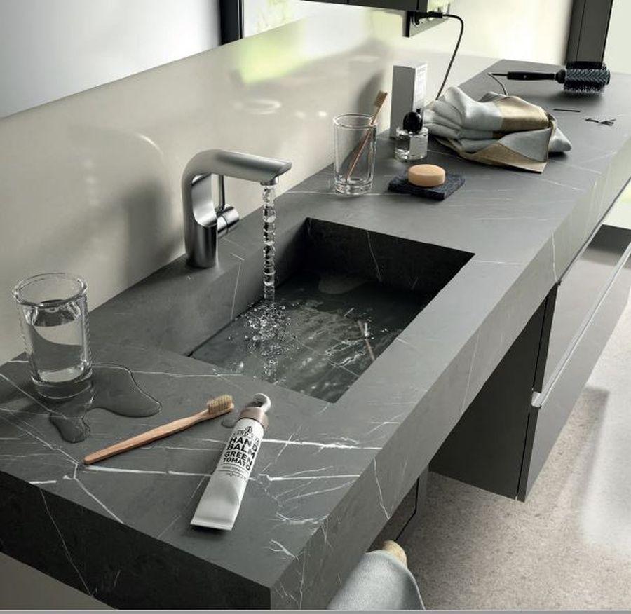 Cuarto de baño con encimera Compakt en acabado piedra gris