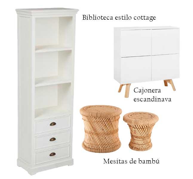 Combina muebles de estilo más clásico con otros de estilo nórdico y minimalista para conseguir el look de esta habitación. La cajonera de 4 cajones de diseño escandinavo es perfecta además de práctica y funcional. Puedes combinarla con nuestro mueble biblioteca de estilo cottage donde colocar tus libros y tenerlos siempre a mano. Con las nuevas mesitas redondas de la gama tribu de bambú pondrás un toque natural además de elegancia y estilo. ¡Atrévete a usarlas como mesita de noche!