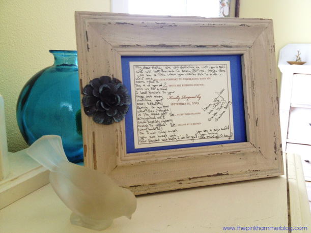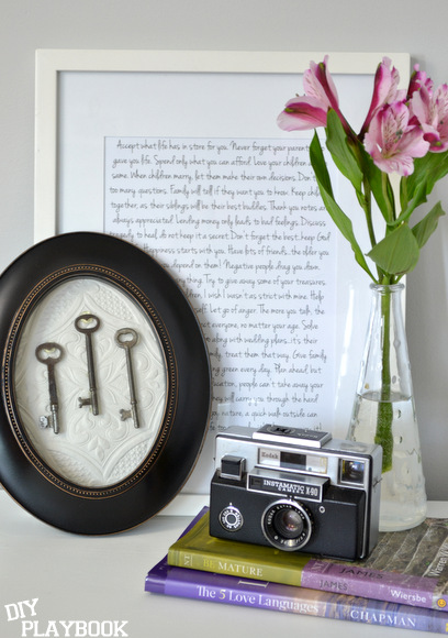 La abuela de una de nosotras, ya os hemos hablado de ella, la abuela Ana, siempre gustó de escribir. Con esa letra característica de colegio de monjas (del Sagrado Corazón, en este caso), escribía misivas por doquier a amigos y familiares, como se solía hacer... Pues esta dama, que lo era, tuvo una vida bastante difícil, teniendo en cuenta que sobrevivió a cuatro de sus diez hijos. Pues cuando falleció, los seis restantes encontraron una preciosa carta en la que se despedía de ellos, dejaba constancia del amor tan profundo que les tuvo a todos, y dejaba "instrucciones" de cómo quería que su recuerdo perdurara en ellos, en sus nietos y bisnietos, como nexo de unión de la familia. Y lo consiguió, a pesar de las distancias que nos separan a algunos, seguimos en contacto constante. Ni que decir tiene que las nuevas tecnologías nos ayudan y que un estupendo grupo de whatsapp nos permite el charlar a diario y seguir recordando a la matriarca de nuestro clan. ¡Cómo disfrutaría viendo que seguimos escribiendo aunque sea sin pluma! Esa carta tan entrañable fue fotocopiada para que cada hijo de la Abuela Ana tuviera un ejemplar, una de los cuales ocupa un lugar especial en el dormitorio de su hija y madre de una de nosotras, enmarcado como el mejor de los lienzos. Cartas, invitaciones de boda, partidas de bautismo... Un sinfín de recuerdos para mantener a la vista, y a la vez, decorando.