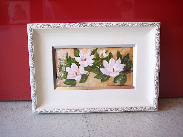Después le colocamos un marco ancho en color blanco decapado con detalles en plata como el marquito pequeño que le hemos colocado dentro.