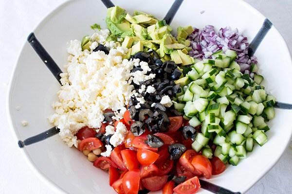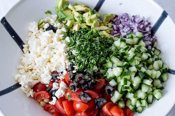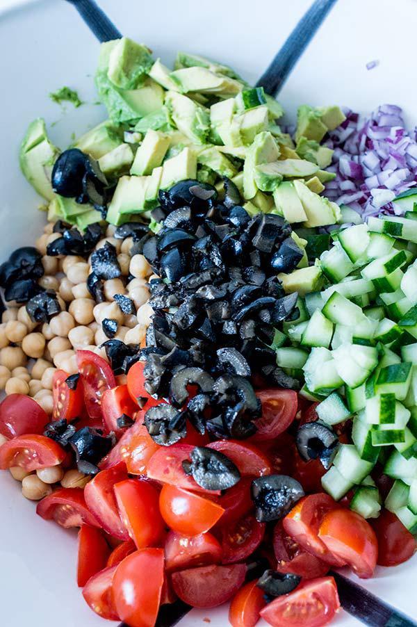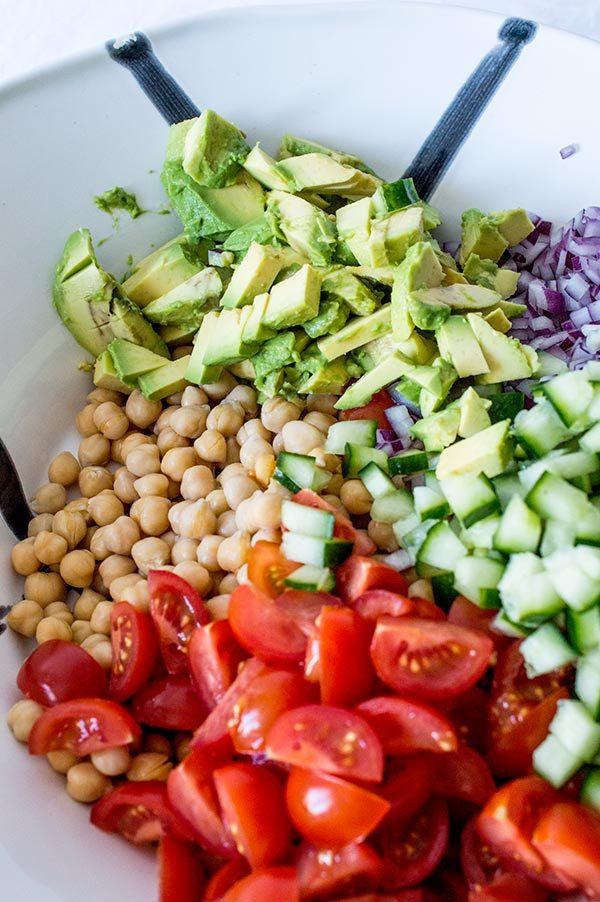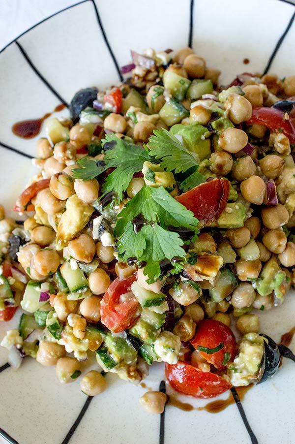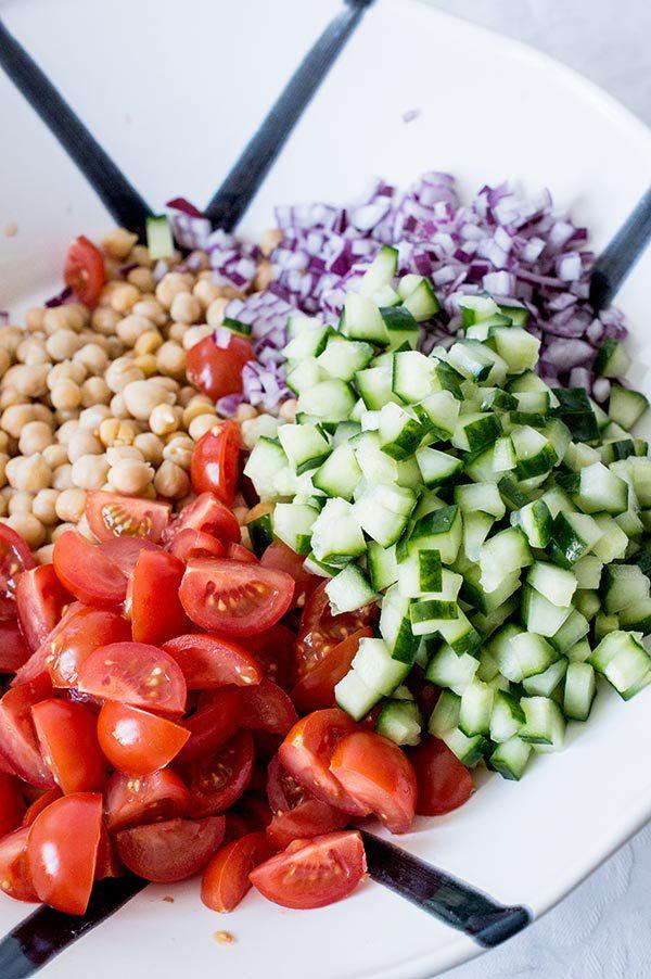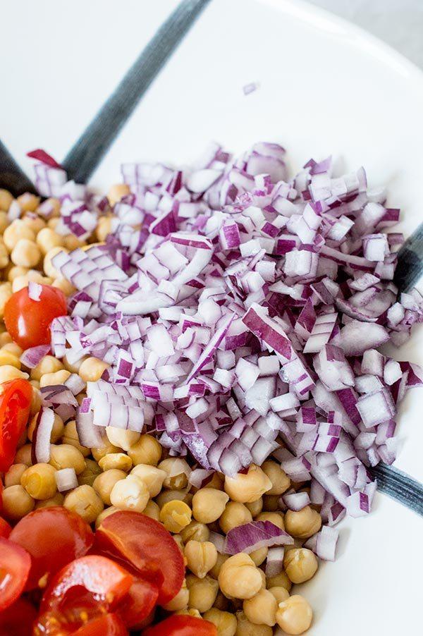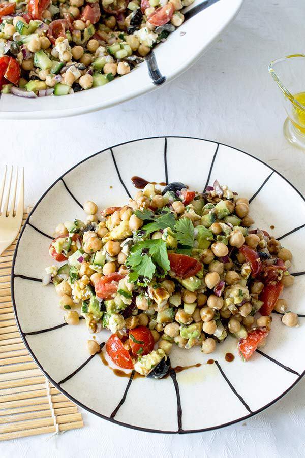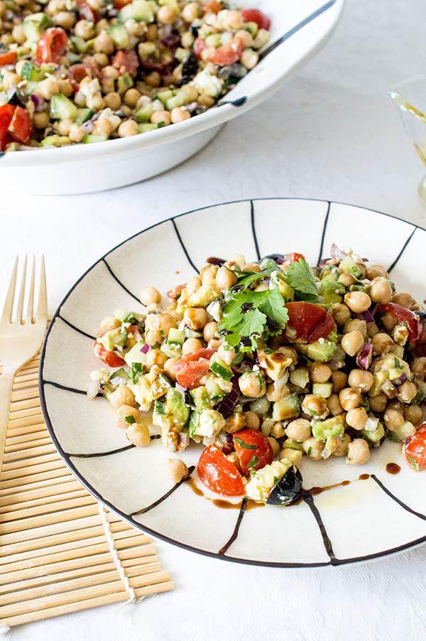 La ensalada mediterranea de garbanzos que os enseño hoy es muy rápida y sencilla de hacer, ademas de super nutritiva! La verdad es que con este tiempo tan frió que viene apetece tal vez mas comer las legumbres en un puchero, el cocido de garbanzos es sin duda uno de los platos estrella del invierno, pero a mi las ensaladas me apetecen durante todo el año y el otro día tenia muchas ganas de comer algo fresco. Tres días de viaje de trabajo fuera de casa fueron suficientes para tener la “necesidad” de comer algo fresco, así que en 10 minutos tenia lista una ensalada de garbanzos con aires mediterráneos que esta super buena! Ademas plato único y sin complicaciones!