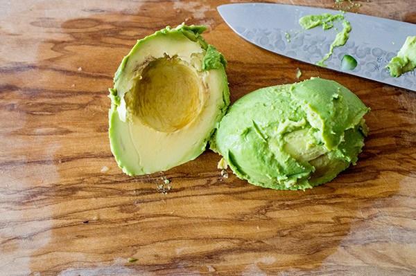 Pelamos y troceamos el aguacate.