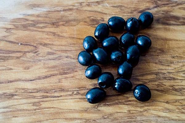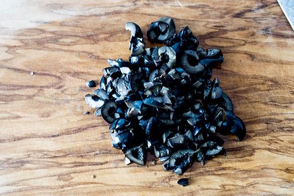 Picamos las aceitunas negras.
