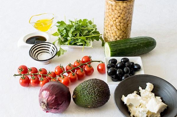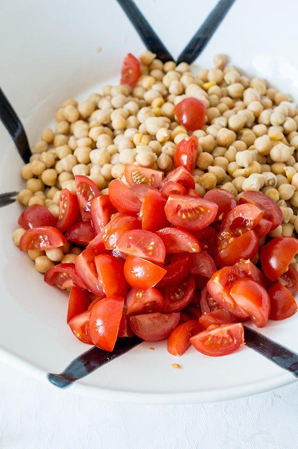 He usado garbanzo pedrosillano en bote y es que la verdad es una gozada abrir uno y tener ya listas las legumbres, una buena lavada debajo del chorro del agua y están perfectos para comer. A mi me gusta la variedad de pedrosillano por que es mas pequeño y me parece que tiene una textura muy mantecosa! También a falta de buenos tomates he usado tomates cherry que saben mas que los tomates que encontramos ahora en las fruterías! Puedes poner los ingredientes que mas te gusten, por supuesto! Yo he añadido un poco de cilantro porque me encanta pero se que hay mucha gente que lo odia, así que sustitúyelo por perejil, las hierbas frescas le dan un toque muy rico!