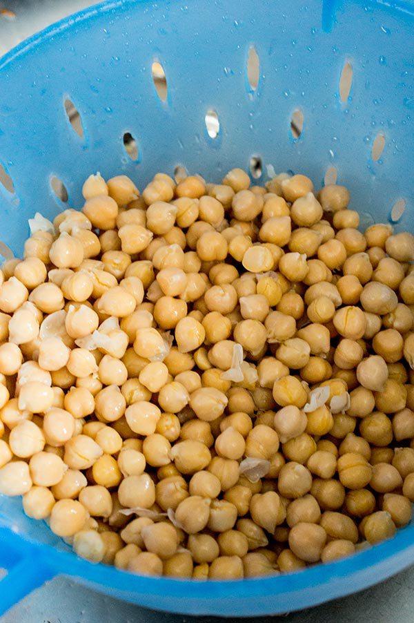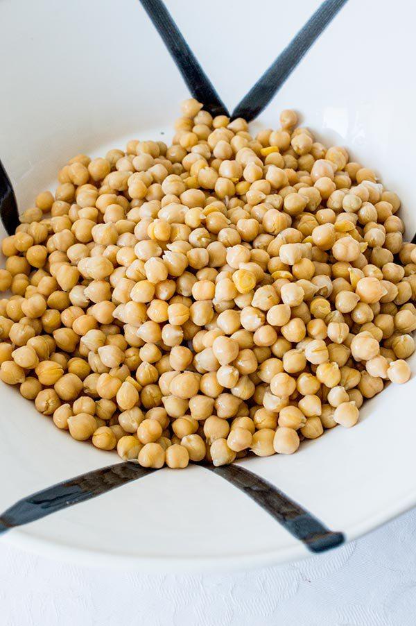 Lo primero de todo es lavar bien los garbanzos! Una vez lavados y escurridos los echamos a la ensaladera.