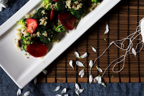 Si habitualmente suelo compartir con todos vosotros recetas fáciles de realizar la de hoy se lleva la palma. Esta ensalada de brócoli y quinoa con fresas la tenéis preparada en sólo 15 minutos os lo puedo asegurar. Y de forma tan sencilla que la pueden realizar hasta los menos duchos en la cocina.