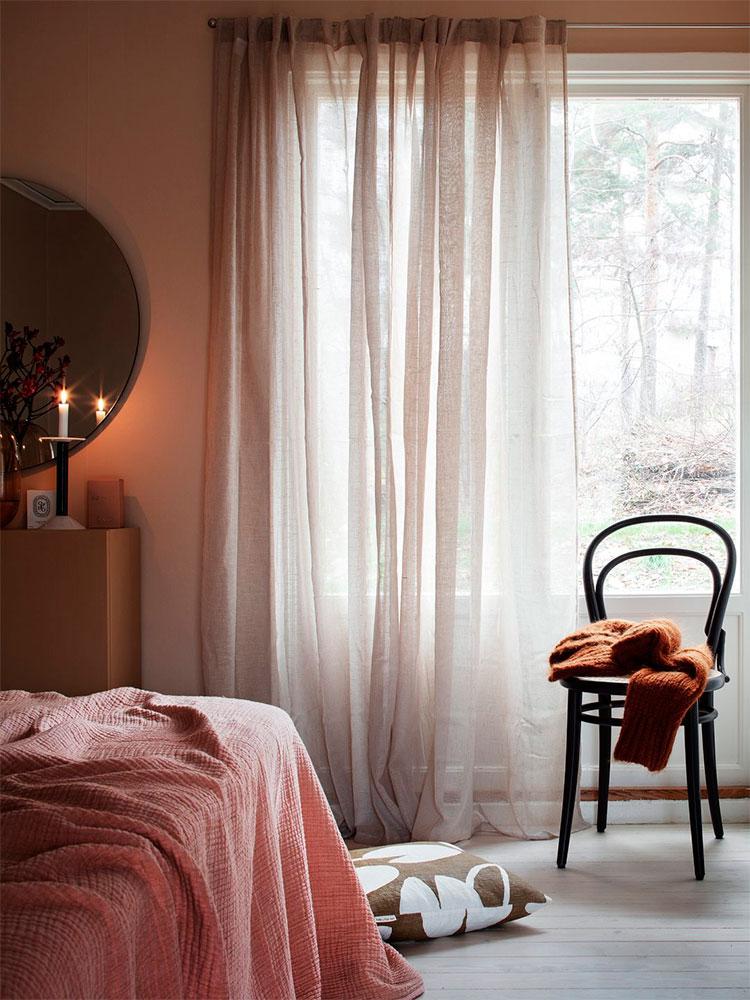 Entre la imagen superior del dormitorio y la inferior, tan sólo se ha añadido un espejo y las cortinas, con eso ya hay un cambio sustancial. Y aunque aquí no lo vemos, en su blog cuenta que el dormitorio también era de color verde (como el de la cocina), pero decidió cambiarlo para que resultara más acogedor.