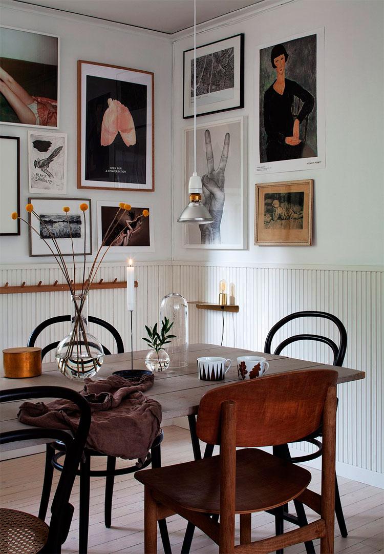 Hoy os traigo lo que podríamos denominar como una casa en constante evolución. Se trata de la vivienda de la blogger sueca Janniche Kristoffersen, de Blogga I Bagis. Tanto su blog como su cuenta de Instagram generan un gran interés, porque además de tener una preciosa casa al sur de Estocolmo, está en constante cambio. Seguro que si os fijáis detenidamente en las fotos, encontraréis diferencias entre los mismos espacios, a veces tan sutiles como cambiar las patas de un sofá, quitar una balda de la cocina, modificar el color de los muebles, o añadir un simple listón de madera para separar la parte superior e inferior de una habitación con el fin de pintarla en dos tonos diferentes. Cambios a veces muy sutiles pero que suponen una gran diferencia en el conjunto.