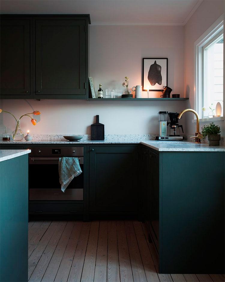 El hueco lateral derecho de la cocina lleva una balda volada en verde, como el tono de los armarios, pues fijaros en las imágenes que vienen a continuación, también está con la balda en blanco (en origen) y finalmente tras su deterioro, procedieron a quitarla ¿Cómo os gusta más, con balda o sin ella?