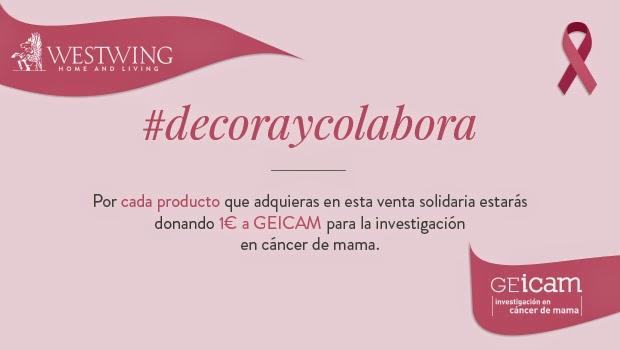 Queríamos sumarnos a la iniciativa que nos propuso Westwing #decoraycolabora, poniendo nuestro granito de arena en esta campaña que estará vigente hasta el próximo 23 de Octubre y a través de la cual se donará 1 ??? a GEICAM, Grupo Español de Investigación en Cáncer de Mama.