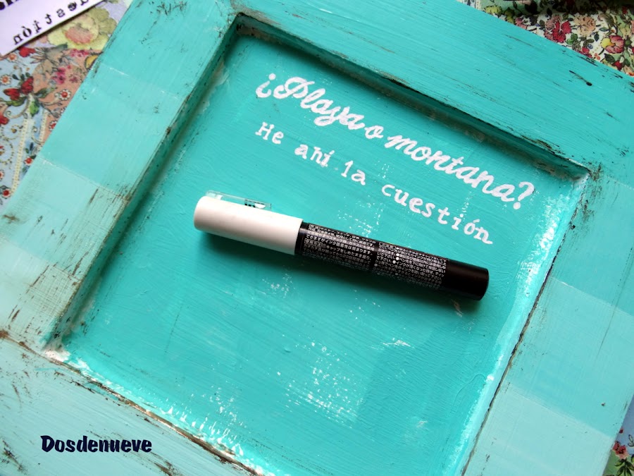 Con un rotulador negro (nosotras hemos utilizado uno porcelánico que teníamos por casa) vamos perfilando el contorno de las letras para que destaquen más. De esta forma tan sencilla, hemos terminado nuestro primer cuadro-cartel de vacaciones y estamos satisfechas porque, de momento, vamos cumpliendo nuestro objetivo lowcost.