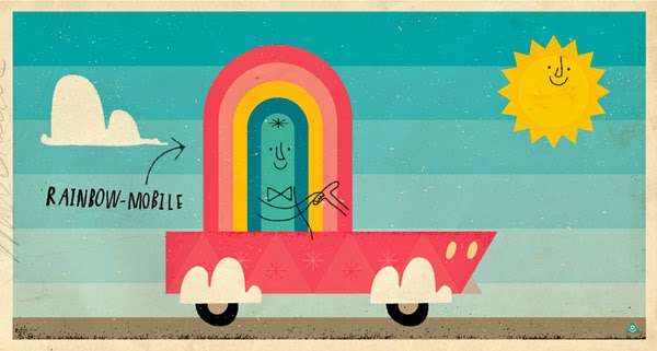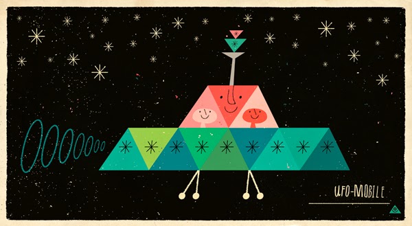 En ocasiones me encuentro de pronto con la obra de algún ilustrador desconocido para mi hasta el momento y al investigar sobre su trabajo no puedo sino sorprenderme por no haberlo conocido hasta entonces. Eso me pasó el otro día, saltando de pin en pin, cuando vi la ilustración que preside este post. Ooooh! Preciosos colores, marcianitos, formas geométricas y divertidas caritas sonrientes que me miraban desde el otro lado de la pantalla. Es la obra de Eric Comstock quien desde Texas nos brinda unas luminosas ilustraciones con un peculiar toque moderno de mediados de siglo, que a mi ya me ha robado el corazón.