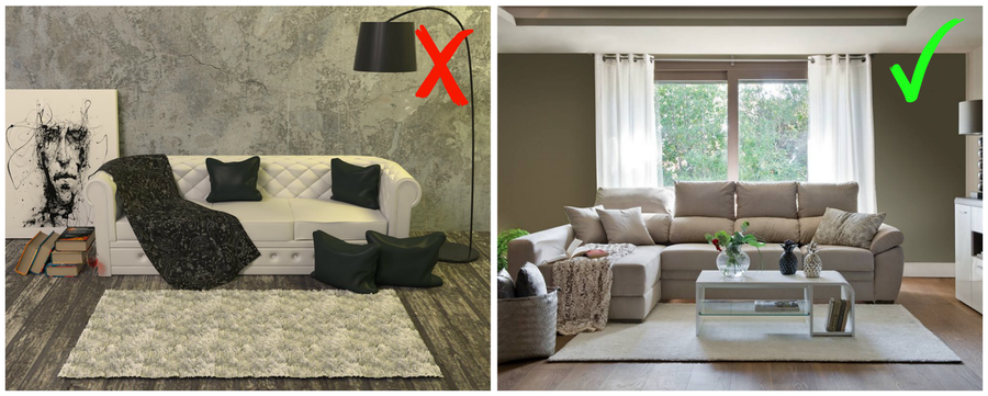 Las alfombras dan un toque decorativo a nuestra casa, pero su función va mucho más allá. También, aportan calidez al hogar, por este motivo, poner minialfombras en espacios grandes no tiene sentido. Deja las alfombras pequeñas para recibidores o pasillos y en el salón o en la habitación escoge una grande sobre la que puedas apoyar tus pies cuando te sientes en el sofá o en la cama. Están para pisarse, así que no tengas reparos y júntala lo más que puedas al sofá.Con una buena alfombra de las medidas adecuadas, te evitarás pisar el suelo frío. Asimismo, tu casa quedará mucho más bonita y bien vestida. A continuación, puedes ver en esta imagen cómo debes poner la alfombra en el salón, en el comedor y en el dormitorio. Si la que ya tienes es pequeña, no te preocupes, porque ahora está de moda poner alfombras superpuestas de diferentes tamaños y colores.