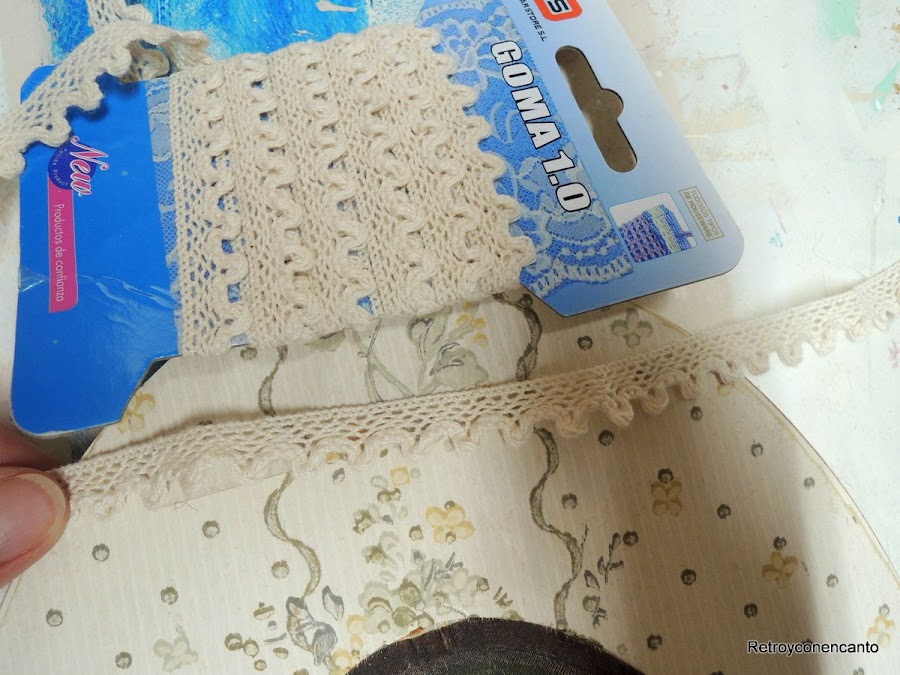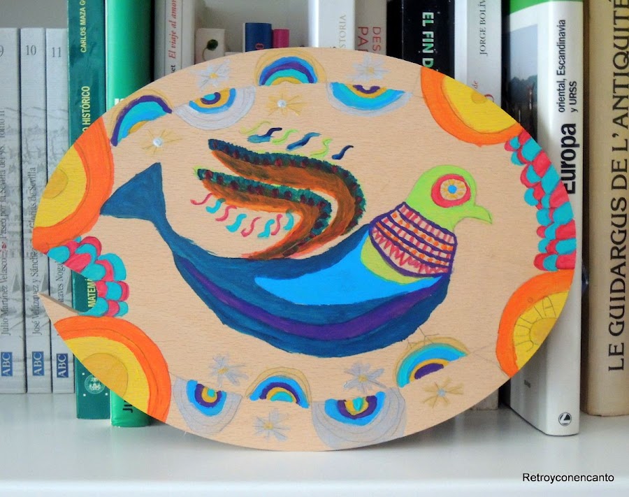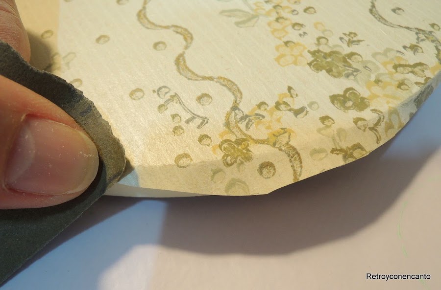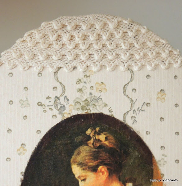 Con él, realizamos un decoupage sobre la madera completa, incluyendo la pequeña parte cortada que, al quedarse hueca por detrás, nos pedía algo que le diera consistencia...,