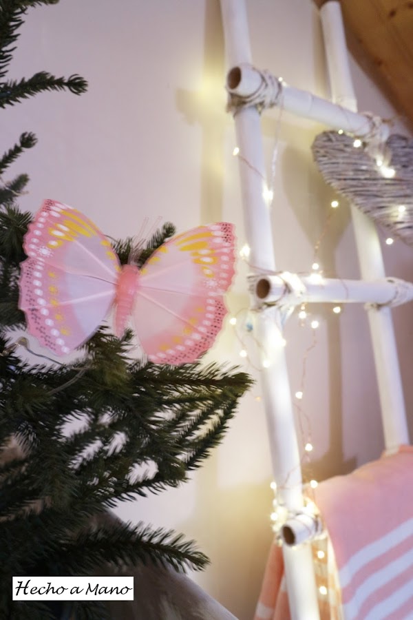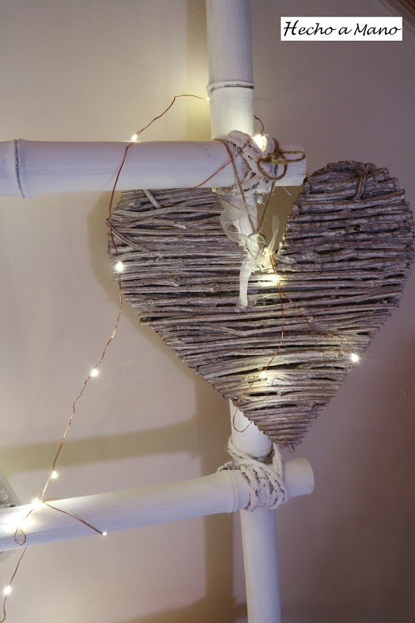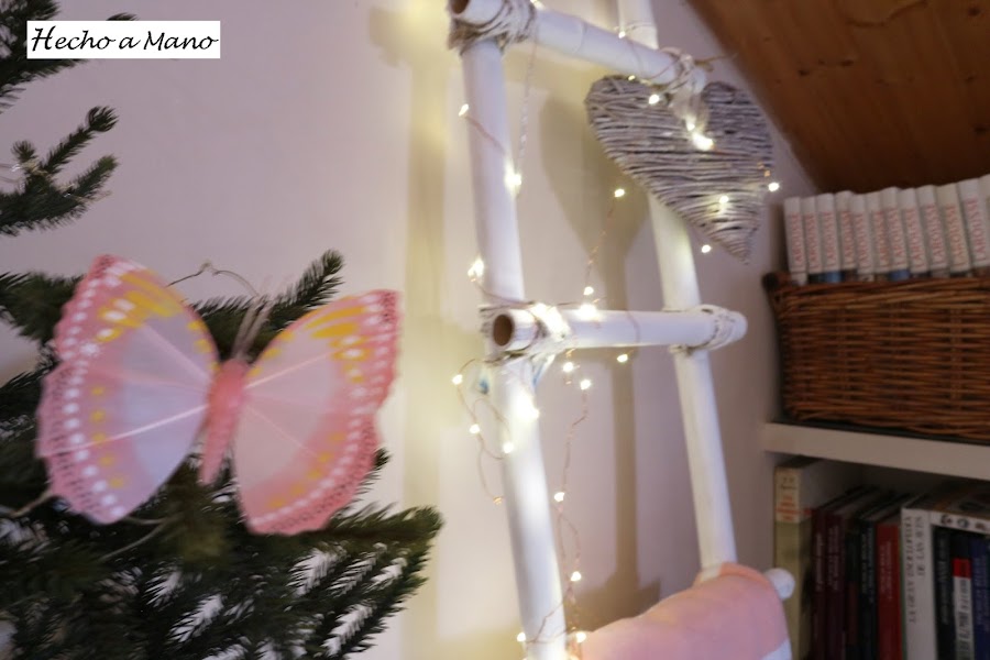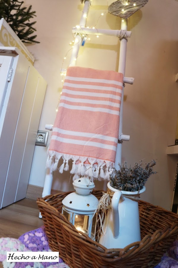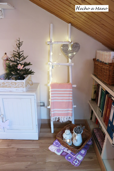Luces que también se llevan mucho y a mí ya sabes que me encantan, uno de los corazones de los que andan repartidos por casa y una mantita a juego con el resto de la decoración de la buhardilla que ahora tiene pequeñas pinceladas en un rosa muy suave y nada empalagoso.