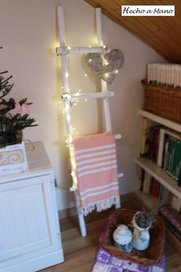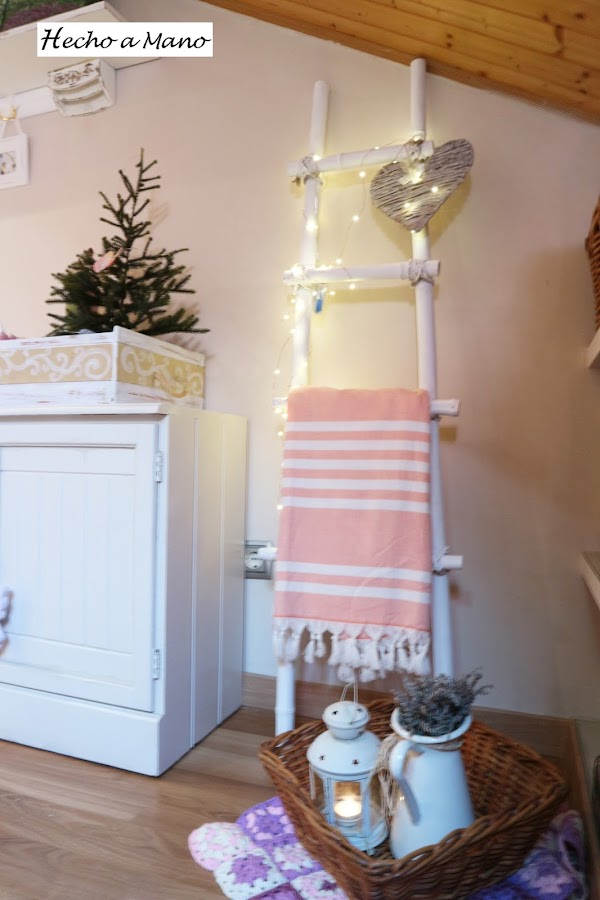 Llevaba tiempo viendo en blogs y webs de decoración escaleras decorativas. Parece ser que están en pleno auge y poco a poco me han ido entrando por los ojos y gustando cada vez más. Ha llegado un momento en que he alcanzado ese punto que tod@s conocéis de: NECESITO UNA. NO PUEDO VIVIR NI UN DÍA MÁS SIN ELLA. En éste punto te echas a la calle y como una autentica perturbada empiezas a recorrer todas y cada una de las tiendas de decoración conocidas y no conocidas. Descubres sitios que ni pensabas que existieran, pero esa......¿puñetera? (con perdón, ¿se puede decir puñetera?), sí puñetera, escalera no aparece por ningún sitio, ni por el más recóndito de los lugares. Entras en alguna tienda y te contestan: LO SIENTO, ESTA MAÑANA SE HAN LLEVADO UNA QUE NOS QUEDABA. ES QUE ESTÁN MUY DE MODA......¡Toma, la lista ésta......A mí me lo vas a contar. Ya lo sé bonita. Por eso me estoy dejando la vida buscando una!. Tanto es así que lo de ESCALERA AL CIELO, no es solo por la canción de Led Zeppelin, sino porque casi me cuesta la vida tanto paseo jajajaaa. Es aquí y justamente aquí cuando decides lanzarte y fabricarte la tuya propia y yo.......¡Me he lanzado!