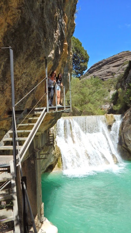 Aparte de ver el pueblo en sí, es prácticamente obligatorio hacer la ruta por el cañón del Río Vero. Importante, eso sí, un calzado cómodo. Ví a gente preparada como para hacer montañismo, tampoco hace falta tanto, pero si un buen calzado ya que hay piedras y el camino hace un poco de pendiente y hay riesgo de resbalar. Cuando llegas abajo, hay una indicación a unas cuevas, hay pocos metros de camino y la verdad que es un entorno muy agradable para descansar un poco con la cueva y el río como entorno, nosotros aprovechamos para comer allí (traer comida de casa tipo bocatas, que allí no hay restaurante...). Después sigues la ruta indicada hacia la central hidroeléctrica y vas por una pasarela bordeando el río dentro del cañón hasta llegar a la presa. Al final del camino se puede volver a subir al pueblo por otro lado sin tener que volver atrás.
