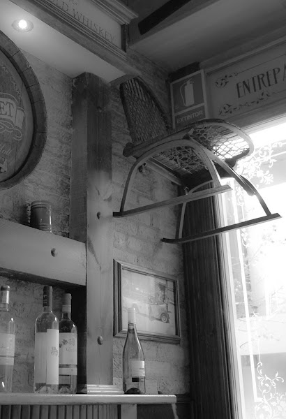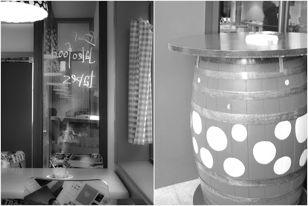 Negros y blancos. Lunares y cuadros. Sillas que son portadas de revistas y hasta una pata de jamón en medio del local, de la que van cortando lonchas para los clientes XD