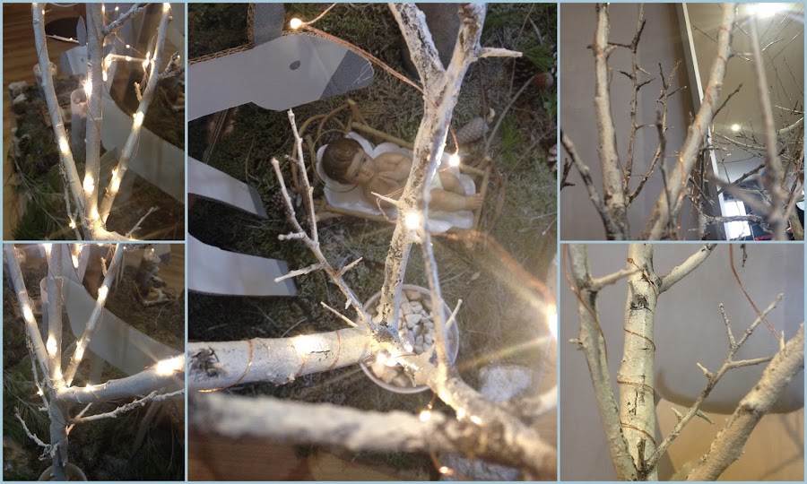 Lo segundo en hacer han sido los arboles, en mi caso vivo en un pueblo rodeado de campo, así que no he tenido ningún problema en encontrar varias ramas de árbol, respetando siempre el entorno natural he cogido ramas rotas que había en el suelo. Hemos recortado las extremidades de la rama hasta que han quedado a nuestro gusto. Seguidamente con mucha paciencia y calma empezamos a pintar todas las ramas enteras, no es necesario que pintéis cada recoveco, queda más natural con sus imperfecciones.