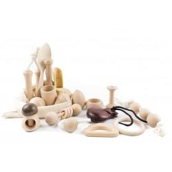 Aquí van nuestras tres propuestas, la bolsa de los tesoros con elementos naturales, el cubo de madera de pino Pikler de 50×50 y las botellas sensoriales. Tenéis los links directos de los productos en cada uno de los títulos de los materiales. Juguetes abierto y desestructurados que fomentarán el juego libre de vuestros pequeños