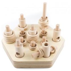 Dos propuestas para este grupo de edad que me encantan. El conjunto de 72 elementos de Lola Grapat ofrecerán mil posibilidades para el juego libre, los mini mundos y el juego simbólico. Y también os proponemos el hexágono de juego con cilindros y anillas. Un material propio de Jugaia, que os puedo asegurar, de primera mano, que ofrece muchísimo interés y juego.