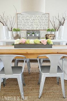 La zona del comedor ya la decoramos con las sillas y lámparas, por lo que no combine mucho saturar el espacio con grandes centros, los cuales tienen que ser siempre proporcionales al al tamaño de la mesa. Siempre buscar una idea sencilla y práctica.Bss.