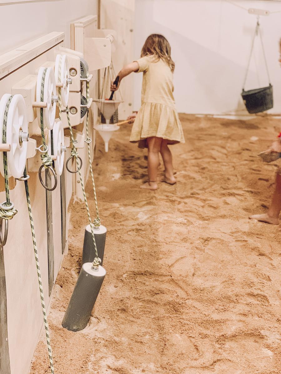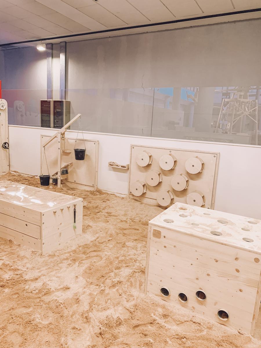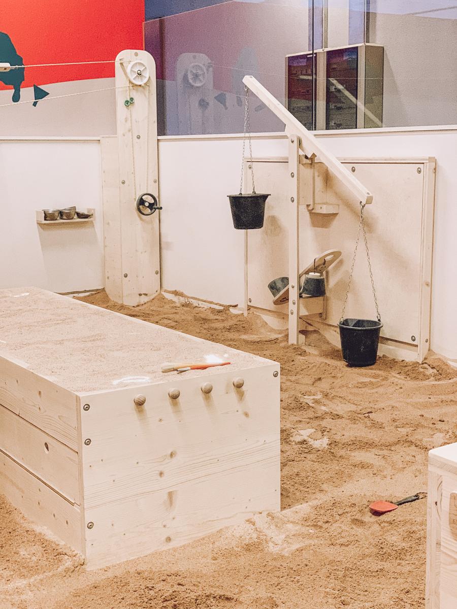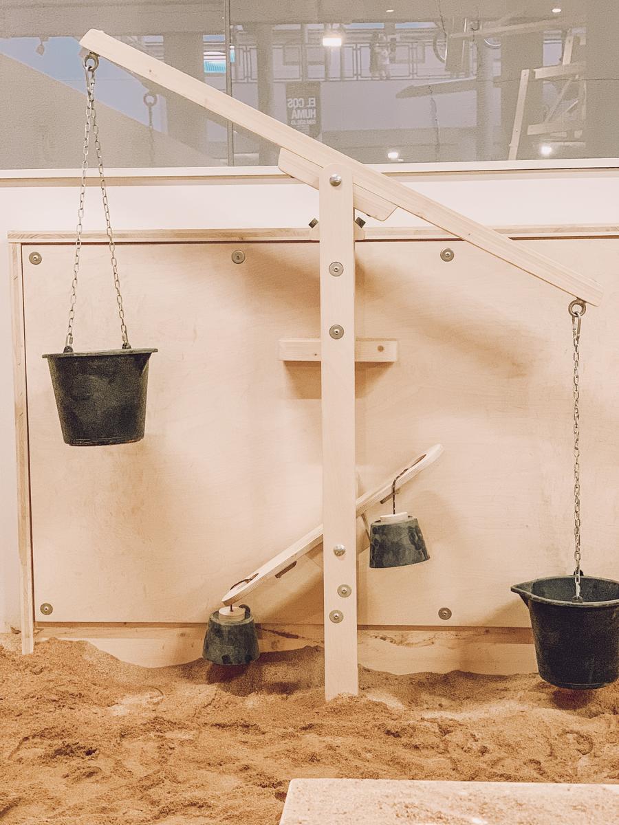 Explora está dividido en dos zonas: una de arena para que los más pequeños despierten sus dotes de ingeniería y otro con diversos materiales dedicados a la ciencia como imanes, pedales, rampas, aparatos históricos…