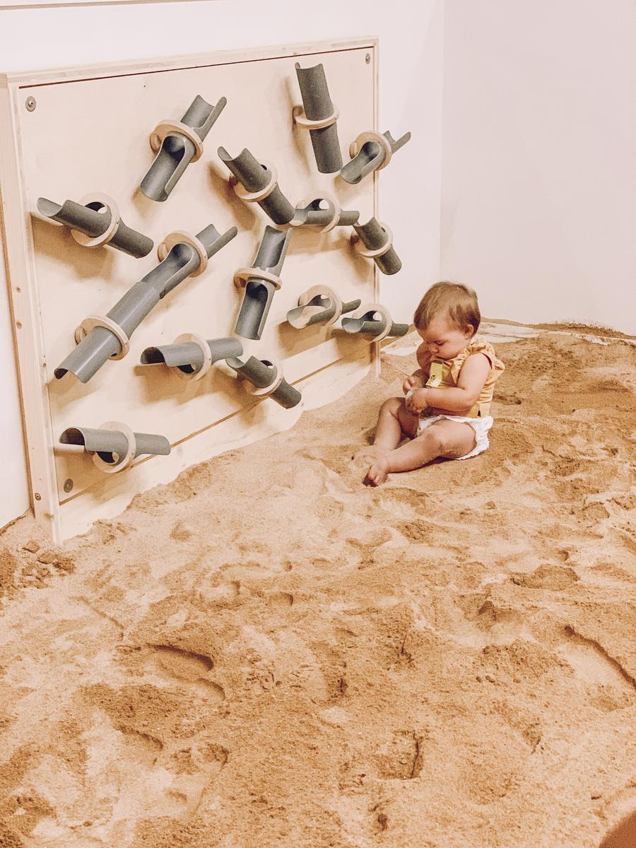 Después podéis dirigiros hacia la planta baja donde encontraréis el espacio Explora 0-6. Es un espacio de juego libre donde el único objetivo es que los niños jueguen y experimenten con el material que se ha pensado para ellos.