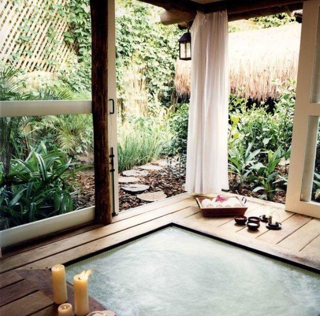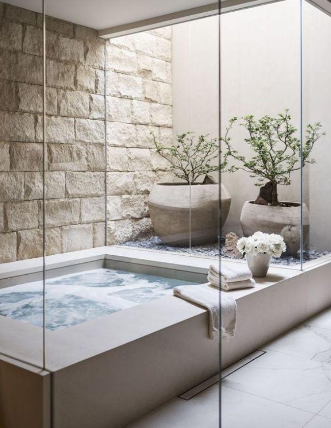 Si te estás haciendo una casa a tu gusto, ¿has pensado en la posibilidad de hacerte un spa con vistas…? Puedes elegir uno de los lugares privilegiados de la casa para el mismo, quizá en el dormitorio junto a una gran cristalera, o quizá en un espacio a pensado a propósito para disfrutar de unas hermosas vistas sobre la montaña o el mar: una terraza, un torreón, una terraza superior…Instalar un spa en casa: el patio interior