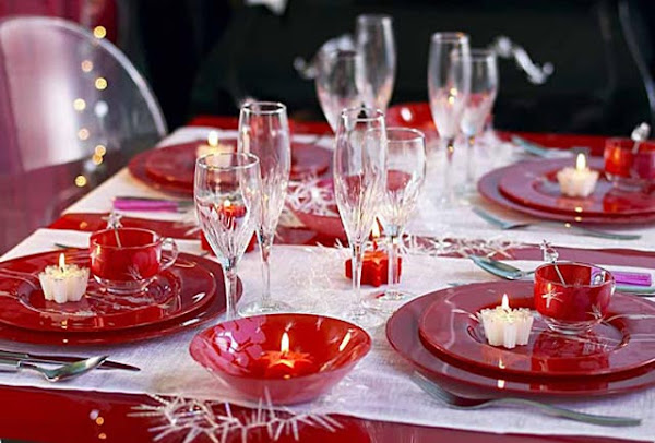 Para decorar nuestras mesas, podemos optar por aprovechar algún viejo mantel blanco, o bien comprar lienzo del mismo color, y luego pintar sobre él diferentes modelos navideños simples, desde estrellas, campanas y hasta paisajes navideños, utilizando pintura para tela en colores rojo y verde. Obviamente todo esto dependerá de nuestra capacidad como artistas.