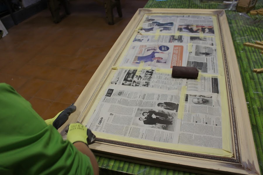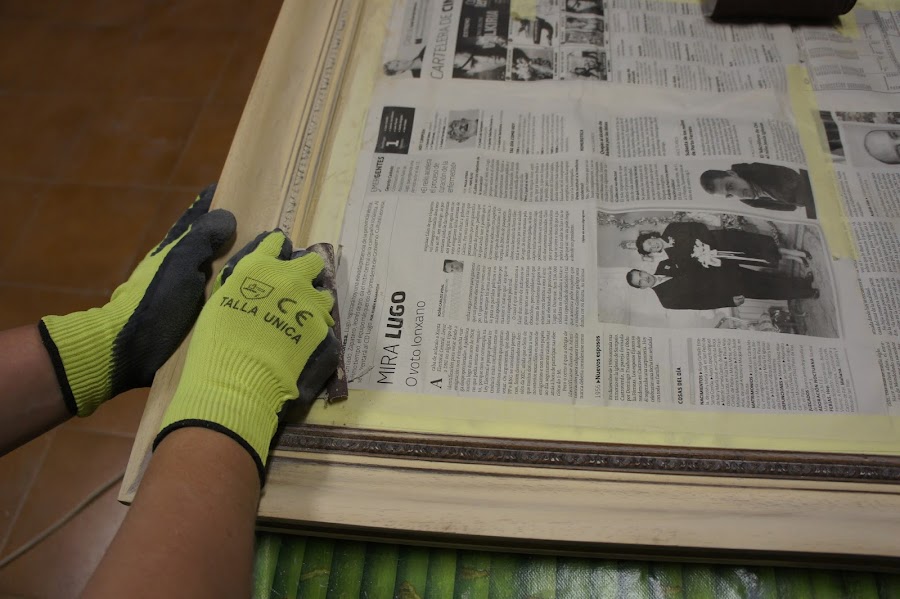 He dejado las esquinas a medio lijar dibujando así un desgastado en los cuatro ángulos...