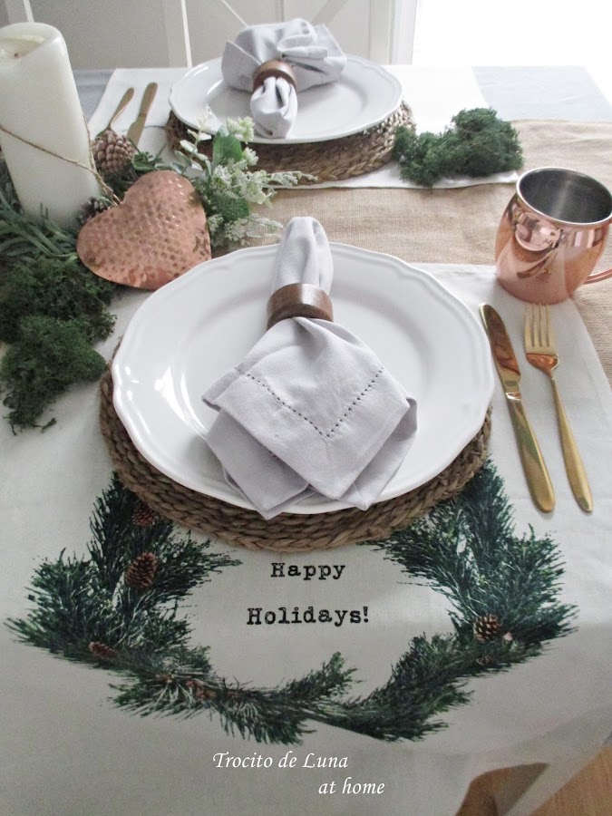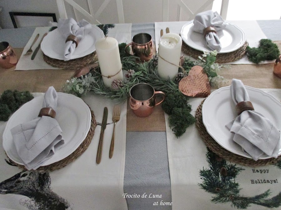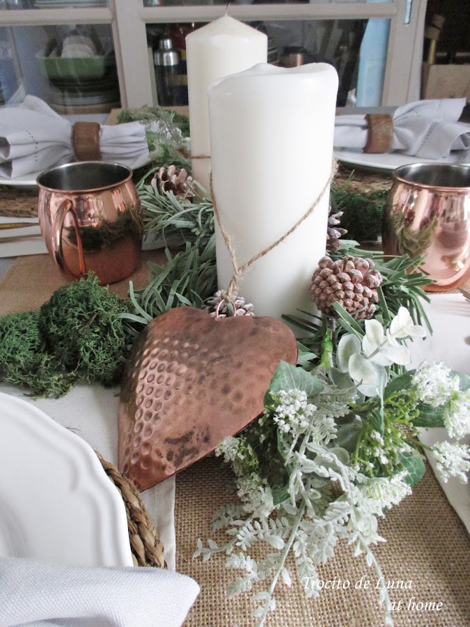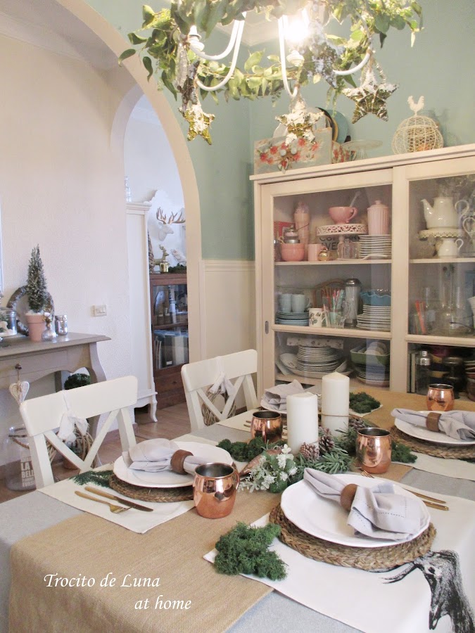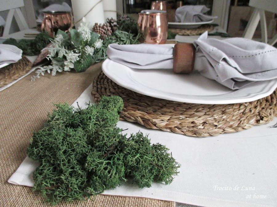 Siempre tengo musgo en casa, me encanta y decora muchísimo, así que tiré de él y coloqué montoncitos varios por la mesa - probablemente a la hora de comer molestará pero me encapriché y me gustó como quedó - así que....