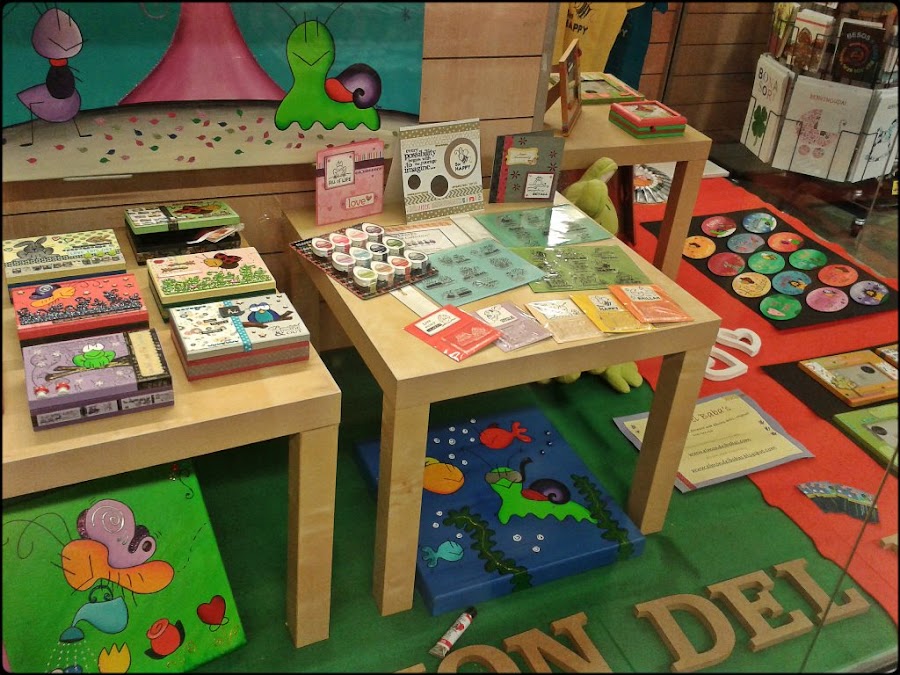 Cuadros, camisetas, sellos, cajas, marcos,... de todo un poco. Estaremos allí todo el mes de diciembre, excepto la semana del 17 al 23, que necesitan el espacio para otro fin.