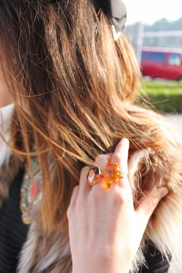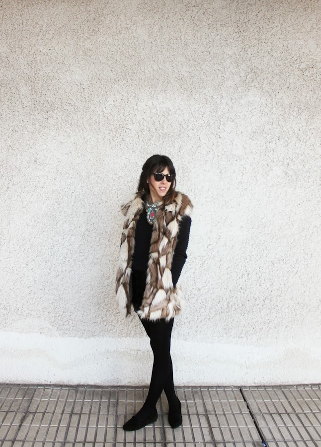 Lara: Yo en cambio he optado por un total black que siempre funciona y sobre el que destacar los complementos. Es un look muy fácil de conseguir, además viste mucho simplemente es sacarle partido a tus joyas o como en mi caso quitárselas a la abuela, jaja!