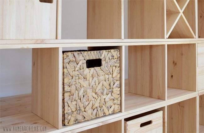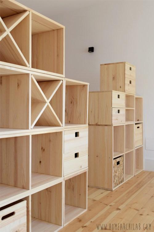 Se trata de una serie acabada en madera natural sin barnizar con distintos módulos que se pueden combinar de infinitas maneras. Además, como no tiene acabado es muy fácil de personalizar, lo que me requetechifla.