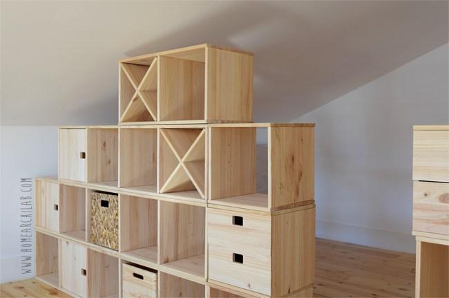 Hace unas semanas te hablé del diseño de mi nuevo estudio/taller en la buhardilla de la casa y ya te adelanté que la solución sería una estantería modular.