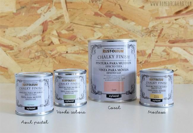 Para ello, he escogido estos 4 colores de pintura a la tiza también de Leroy Merlin.